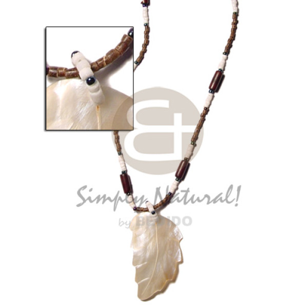 4-5mm coco Pokalet. nat. brown handpainted 15mm robles round wood beads & white rose shell accent /..