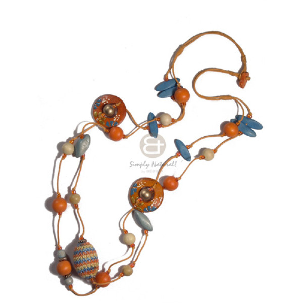 dangling 15mmx8mm disc robles wood beads acrylic crystals & blackpen shell nuggets accent..