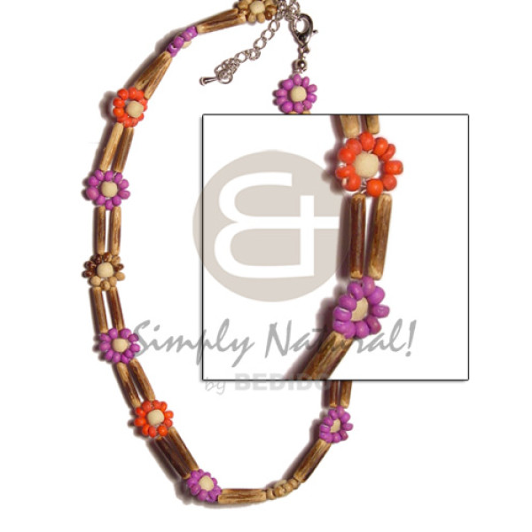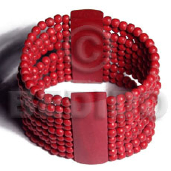natural white wood maroon/blue/green combination elastic bangle..