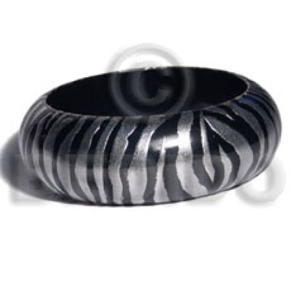 black/ stained high gloss coat nat. white wood bangle embossed metallic handpainting / ht= 25mm / ..