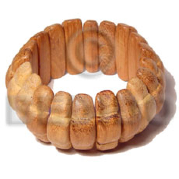 elastic multi sided diamond bleached buffed and polished nat. white wood bangle clear coat finish/..