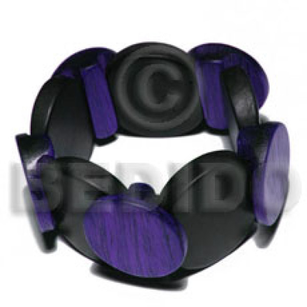 elastic overlapping round wood bangle clear coat finish/ 37mm nat. wood in black & 30mm round pa..