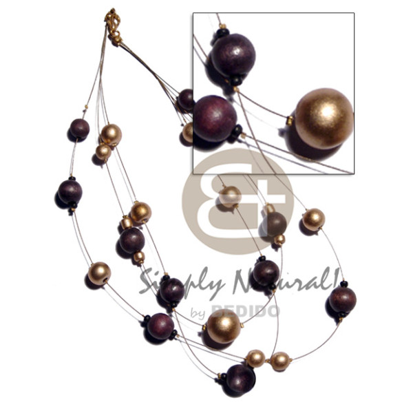 elastic 6 rows 8mm wood beads- greywood,nangka, bayong on ht=55mm nangka wood stick..