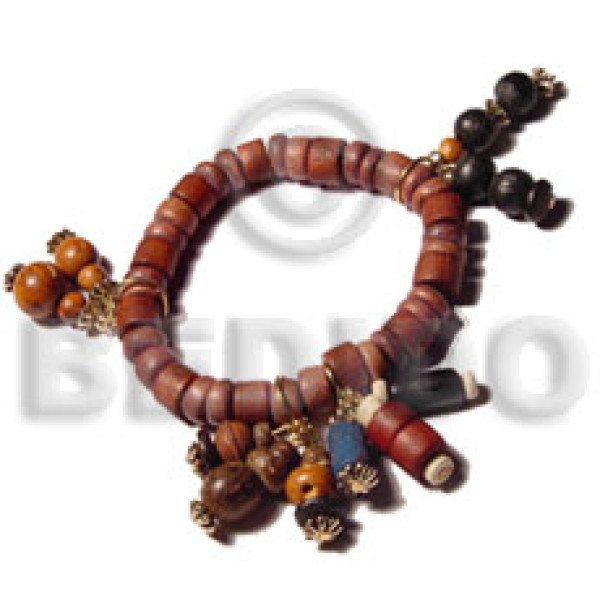 elastic bracelet wrapped wood beads. bayong round wood and kukui nuts combination..