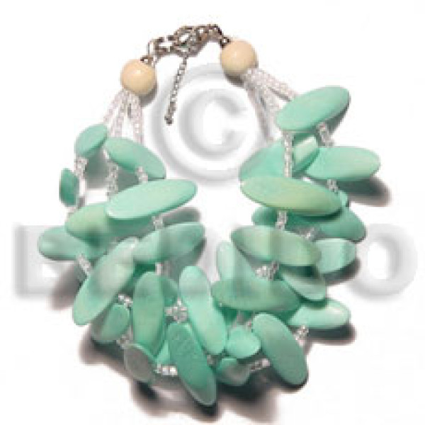 3 rows aqua green slidecut wood beads glass beads combination..