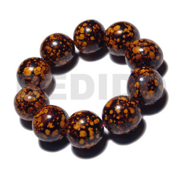 10 pcs. of 20mm round wood beads in high polished paint gloss marbleized brown/beige combination / e..
